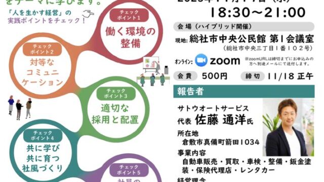 ホーム 2024年8月27日2025年11月17日 中小企業家同友会とは? こんな活動を行っています 企業変革支援プログラム 新着情報 すべて行事案内活動レポート会員企業紹介 【岡山県よろず支援拠点共催】 第12期女子大学開講 2025年11月19日 第53期経営指針成文化研修 「半年間の研修で、経営姿勢の確立を目指す」 2025年11月19日 第39回「魅力発信!-New Face」(株)長崎鐵工所 2025年11月18日 会報紙「COM」446号 2025年11月号 2025年11月17日 <12/10開催>同友会オリエンテーション 2025年11月17日 すべては経営者の覚悟が試されている (備北⽀部11⽉例会) 2025年11月10日 2025年11月19日 <12/10開催>同友会オリエンテーション 2025年11月17日 すべては経営者の覚悟が試されている (備北⽀部11⽉例会) 2025年11月10日 2025年11月19日 2026新春経営講演会 2025年11月10日 鈴木屋流! 付加価値の素 (岡山南支部11月例会) 2025年11月6日 2025年11月10日 経営指針の実践で社員と共に成長する会社を作る! (倉敷支部11月例会) 2025年11月6日 2025年11月10日 気づきと好奇心が未来を拓く (東備&作州合同11月例会) 2025年11月5日 2025年11月10日 【岡山県よろず支援拠点共催】 第12期女子大学開講 2025年11月19日 第53期経営指針成文化研修 「半年間の研修で、経営姿勢の確立を目指す」 2025年11月19日 これから始める経営理念の実践 (作州支部10月例会) 2025年10月31日 お互いを知る会 (岡山北支部10月特別行事) 2025年10月31日 会社と地域の未来を社員とともに考えられる会社づくり (作州支部9月例会) 2025年10月16日 逆境を乗り越え未来へつなぐ経営 (岡山南支部9月例会) 2025年10月16日 第39回「魅力発信!-New Face」(株)長崎鐵工所 2025年11月18日 第38回「魅力発信!-New Face」パソコン駆け込み寺 岡山下中野教室 2025年10月17日 あなたの知らないわが社のヒミツ・その9-就労継続支援B型事業所カモノハシ(株式会社FIL DESIGN) 2025年8月20日 第37回「魅力発信!-New Face」STORY 2025年7月23日 第36回「魅力発信!-New Face」(株)空庵 2025年6月23日 2025年7月1日 第35回「魅力発信!-New Face」(株)ブロス 2025年4月28日 入会のご案内 行事案内 会員企業紹介 活動レポート 調査・提言 会報紙「COM」 役員名簿 公開行事予定 会員外の方もご参加いただけます。行事タイトルをクリックして表示されるページからお申込みください。 このエリアはインラインフレームを使用しています。