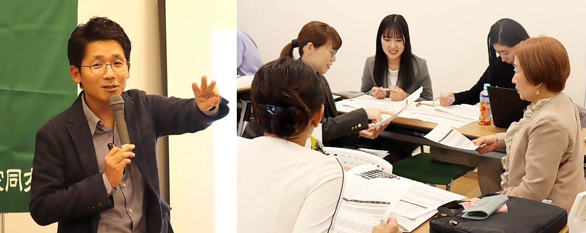 続いて、架空の金属加工業の経営者を想定し、新規受注を検討するワークを実施しました。設備更新の初期投資や、300万円分の原材料保有、月末締め翌月払いーーといった条件が提示され、各自で損益計算書と資金繰り表を作成しました。解説を受けた後、グループで受注するか否かの結論とその理由を共有し、意思決定の視点を学びました。