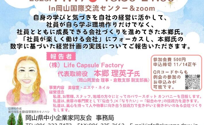 行事案内 人を生かす経営で 社員が活躍できる会社に! (岡山北支部&障害者問題委員会 合同11月例会)