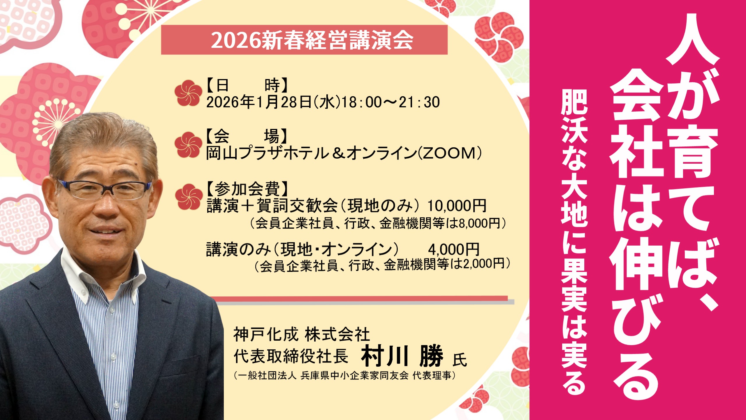 ■会員以外の経営者・後継者・取締役以上の幹部の方、行政・経営支援機関・金融機関の方もご参加いただけます(会員企業以外の一般社員の方のご参加はご遠慮願います)。